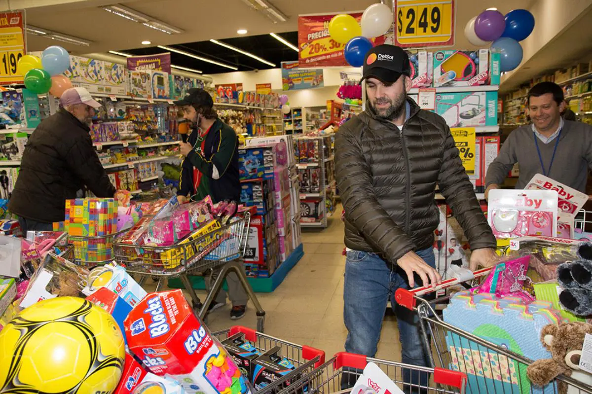 Minutos después y sobre el “Camión Solidario”, Iñakie Abadie y Waldemar - quienes también formaron parte de ésta acción-, se trasladaron rápidamente hasta el local de Ta-Ta ubicado en 18 de Julio y Roxlo, donde los esperaron con más de 200 juguetes.